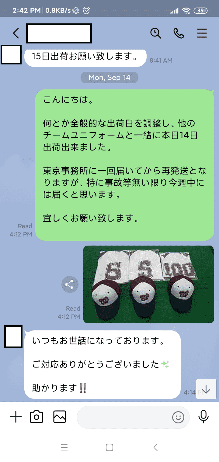 チームでのご注文の場合、最初1着を作成して、写真をお送りし、お客様に確認を取ります。